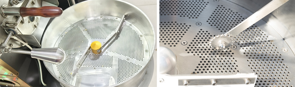 The horizontal sampler allows for bean sampling at any time for evaluation, while the quartz glass observation window provides a clearer view of the roasting process inside the bean drum.